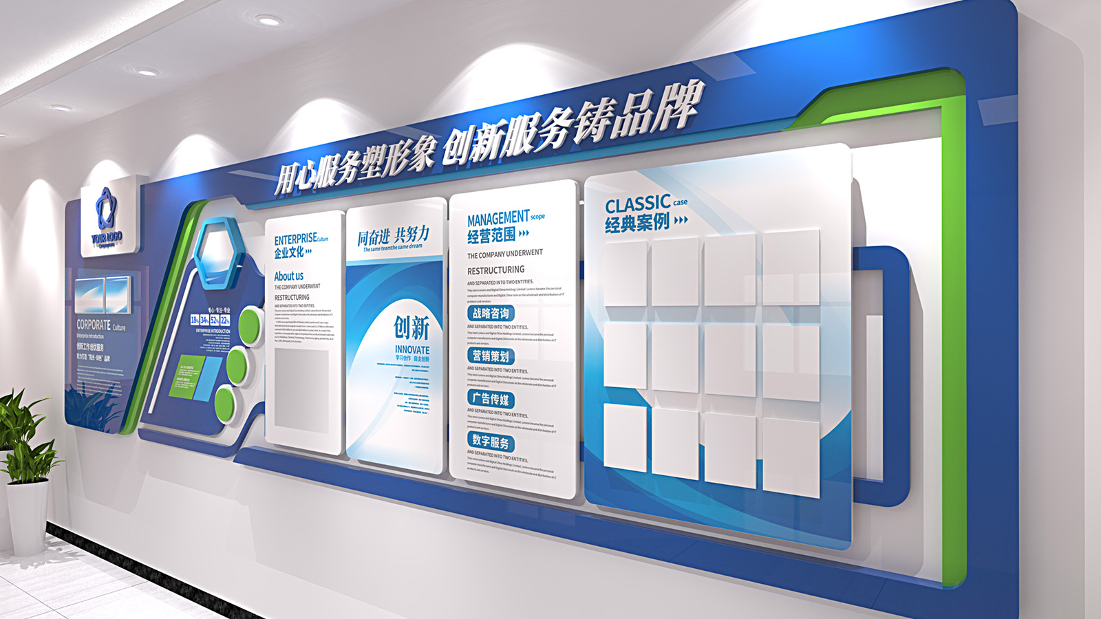 我们是一家专业的文化墙设计与安装公司,具有十几年丰富的经验,致力于为企业打造独特且富有感染力的文化墙。凭借丰富的行业经验和专业的设计团队,我们能够根据客户需求,量身定制符合公司形象和文化特色的墙面展示方案。我们关注每一个细节,从创意设计到安装实施,确保为客户提供高品质的服务和成果。让文化墙成为企业文化传播的有力工具,增强员工归属感及客户认同感。公司有海量模版可供选择,免收设计费。支持付费定制设计,满足客户各种需求。